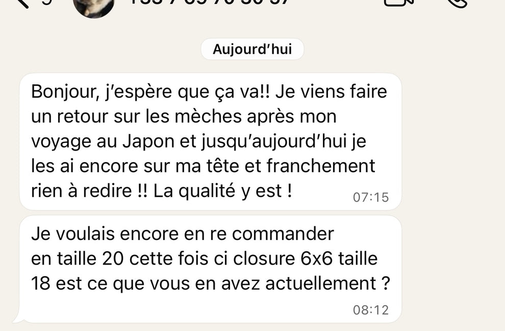 J’ai eu un léger retard sur ma commande, mais le service client a été super réactif et rassurant. Quand j’ai enfin reçu mon colis, tout était bien emballé et les cheveux étaient magnifiques. Une expérience positive malgré l’attente.
